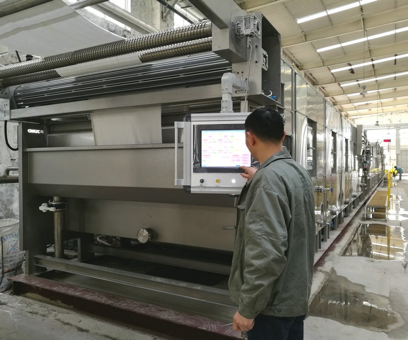 公司實(shí)施技改中投資的平幅水洗機(jī)和平幅煮漂機(jī)經(jīng)前階段緊張的安裝調(diào)試,于3月份正式投入生產(chǎn)。平幅水洗機(jī),是供平幅織物洗滌用,是平幅織物練漂、絲光、染色、印花及樹脂整理等加工設(shè)備的主要單元機(jī)械之一。此外,還可應(yīng)用平洗機(jī)浸軋化學(xué)藥劑,以使織物達(dá)到漂白、提高染色牢度、增加花色鮮艷度、增加柔軟手感等目的。