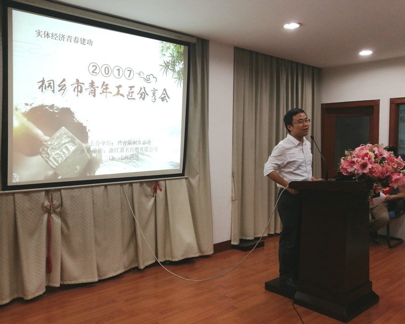 分享會上,團市委書記陳曉雷首先講話,他說,這次活動是團市委根據(jù)嘉名莫總的提議,開展的一次“實體經(jīng)濟●青春建功”桐鄉(xiāng)市青年工匠分享會走進嘉名活動,通過今天“優(yōu)秀青年工匠”代表的經(jīng)驗交流,希望嘉名的青年以他們的人生經(jīng)歷和成長激勵自己,爭做新時代的優(yōu)秀青年。