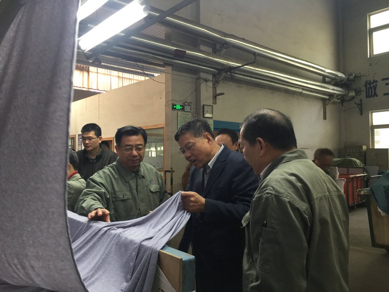 徐紀(jì)平副秘書(shū)長(zhǎng)等領(lǐng)導(dǎo)到染部車間現(xiàn)場(chǎng),實(shí)地察看了公司生產(chǎn)現(xiàn)場(chǎng),向公司領(lǐng)導(dǎo)了解了公司今年經(jīng)營(yíng)情況和轉(zhuǎn)型升級(jí)工作。莫總向調(diào)研組領(lǐng)導(dǎo)介紹了公司基本情況和近年來(lái)公司推進(jìn)轉(zhuǎn)型升級(jí)工作,特別是今年實(shí)施的淘汰落后產(chǎn)能實(shí)施智能化生產(chǎn)技改項(xiàng)目。調(diào)研組領(lǐng)導(dǎo)在車間里仔細(xì)察看了公司引進(jìn)的意大利貝利尼公司生產(chǎn)的超低浴比溢流多功能生態(tài)勻染染色機(jī),以及中央控制室,染料助劑自動(dòng)化輸送系統(tǒng),對(duì)公司實(shí)施智能化生產(chǎn)技改的轉(zhuǎn)型升級(jí)舉措給予高度肯定,鼓勵(lì)公司領(lǐng)導(dǎo)進(jìn)一步通過(guò)轉(zhuǎn)型升級(jí),推動(dòng)企業(yè)向信息化、自動(dòng)化、智能化方向發(fā)展,實(shí)現(xiàn)節(jié)能減排,減員增效,提高企業(yè)競(jìng)爭(zhēng)力,促進(jìn)傳統(tǒng)企業(yè)的新發(fā)展。