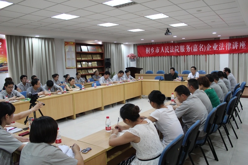 7月27日(周六)下午,應公司邀請,桐鄉(xiāng)市人民法院走進嘉名公司為企業(yè)提供法律服務,在公司行政樓三樓多功能廳,舉辦了一次法律專題講座。公司領導、營銷中心各部門全體人員,財務管理部、信用管理部、品質管理部、采購物控部、經編事業(yè)部的營銷、生產、財務負責人等30余人參加了會議。