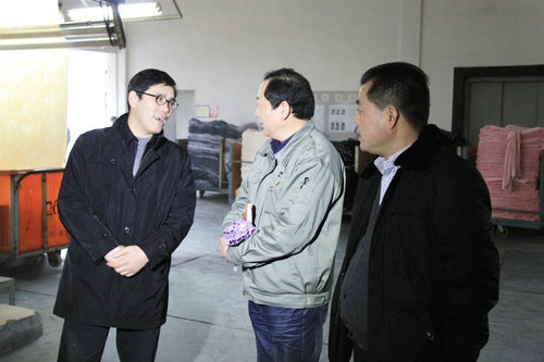 圖為副市長吳炳泉(左1)公司副總經(jīng)理莫榮明(左2)鳳鳴街道書記葛柏金(右1)參觀車間