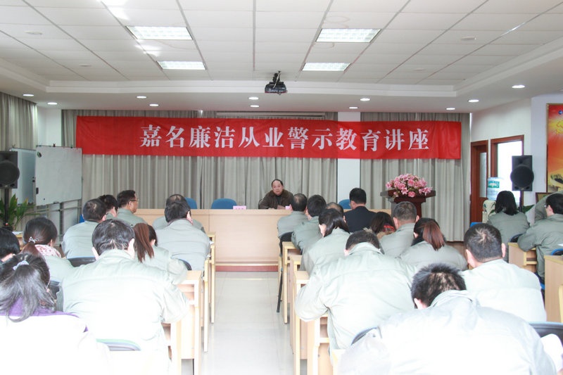 為加強(qiáng)經(jīng)營(yíng)管理人員的從業(yè)廉潔教育,促進(jìn)公司上下認(rèn)清形勢(shì)、提高認(rèn)識(shí)、遵章守紀(jì)、廉潔從業(yè),12月26日下午,公司舉辦廉潔從業(yè)警示教育專題講座。公司領(lǐng)導(dǎo),各部門、各事業(yè)部負(fù)責(zé)人,全體營(yíng)銷經(jīng)理、外協(xié)人員,部分倉(cāng)管員等50多人聽(tīng)取講座。講座邀請(qǐng)桐鄉(xiāng)市檢察院原黨組成員、副檢察長(zhǎng)沈俊夫就非公企業(yè)職務(wù)經(jīng)濟(jì)犯罪的預(yù)防進(jìn)行了深入講解,講座還宣貫了《公司員工廉潔從業(yè)規(guī)定》,公司莫總講了話。