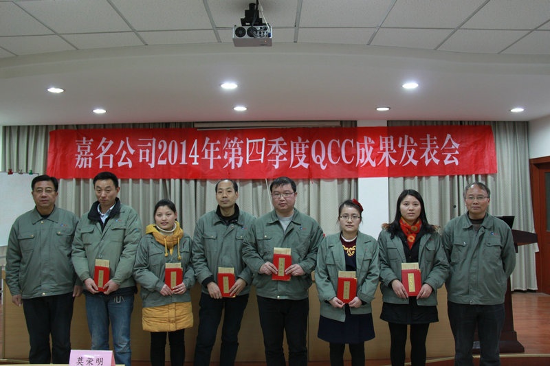1月29日晚,公司召開了第六屆(2014年四季度)QCC成果發(fā)表會(huì),染整事業(yè)部等6個(gè)部門66名員工參與的12項(xiàng)QCC成果會(huì)上發(fā)表。動(dòng)力設(shè)備部的“坯布噴蒸汽機(jī)的自動(dòng)化改造”,染整事業(yè)部的“降低成品布內(nèi)在指標(biāo)的返修率”、“控制印花底布PH值的穩(wěn)定性”、“降低染化料成本”,經(jīng)編事業(yè)部的“提高90克絲光絨成品檢驗(yàn)合格率”,紡織事業(yè)部的“減少坯布剪辦浪費(fèi)”獲得優(yōu)秀獎(jiǎng)。染整事業(yè)部的“改善毛圈布橫向彈性”,動(dòng)力設(shè)備部的“定型機(jī)整緯改裝”,品質(zhì)管理部的“提高檢測(cè)中心測(cè)試進(jìn)度”、“降低入倉(cāng)錯(cuò)誤率”,印花事業(yè)部的“提高分散印花漿料的穩(wěn)定性”、“提高印花打樣配方的準(zhǔn)確性”獲得發(fā)表獎(jiǎng)。這次發(fā)表的QCC成果共有QC小組活動(dòng)。