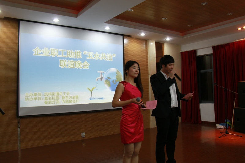 4月29日晚,由鳳鳴街道總工會主辦,“嘉名控股”、“新東方油墨”、“豪庭燈飾”、“方圓聚合纖”協(xié)辦的“企業(yè)職工助推`五水共治'聯(lián)誼晚會”在嘉名公司員工公寓區(qū)舉行。晚會活動圍繞“五水共治”,職工青春奉獻(xiàn)的主題,宣傳“五水共治”,體現(xiàn)企業(yè)職工積極參與“五水共治”活動,整個晚會洋溢在熱烈、歡快的氛圍中。來自四家企業(yè)的職工和鳳鳴街道駐村干部表演了自編自演的快板、三句半、詩朗誦、唱歌等各類節(jié)目,晚會中還穿插了趣味游戲和知識搶答節(jié)目。嘉名公司姚衛(wèi)良、姚鴻、錢珍、吳耀等表演的“‘五水共治’生態(tài)美”三句半贏得了觀眾的熱烈掌聲,晚會在嘉名公司平曉紅歌唱的《愛的奉獻(xiàn)》中結(jié)束。