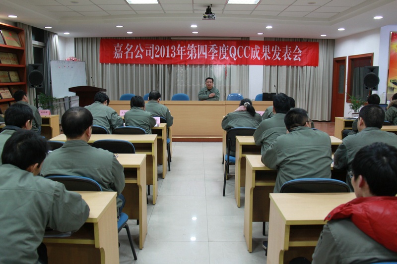 2014年1月13日晚,嘉名公司2013年第四季度(第三屆)QCC成果發(fā)表會(huì)召開,會(huì)上共發(fā)表QCC成果20項(xiàng),經(jīng)評(píng)委評(píng)選,動(dòng)力設(shè)備部福生組的《降低空壓機(jī)用電量》等8個(gè)QCC成果評(píng)為優(yōu)秀獎(jiǎng),紡織事業(yè)部運(yùn)轉(zhuǎn)組的《如何降低氨綸汗布的反氨綸》等12個(gè)QCC成果評(píng)為鼓勵(lì)獎(jiǎng)。
