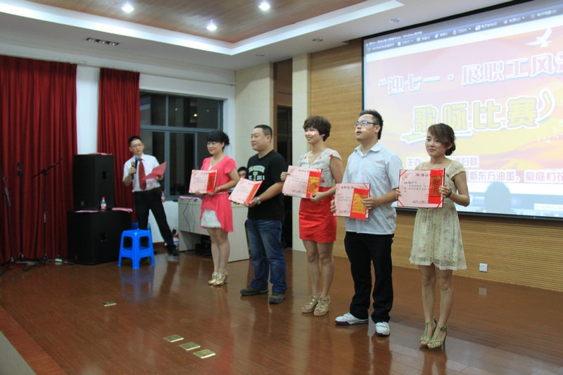 來自鳳鳴街道的企事業(yè)單位32名選手參加了比賽,我公司蔣亞群、周志生、平曉紅、趙健等四人參與了比賽,2名駐村干部登臺友情演唱,他們用健康向上的歌聲紀(jì)念中國共產(chǎn)黨成立92周年,深情表達(dá)了廣大職工對黨、對祖國、對人民的無比忠誠和熱愛。